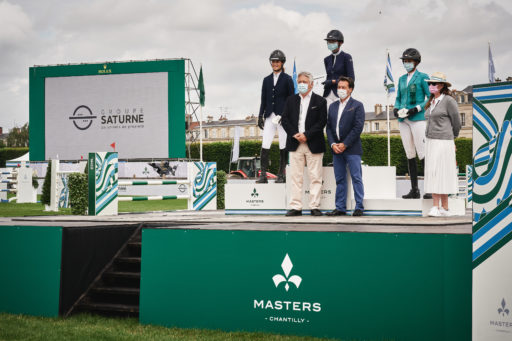 Isee Doem, Felicite Herzog et Annette Wolf sont récompensées sur le podium du Prix Groupe Saturne aux Masters de Chantilly, le 09 Juillet 2021 à Chantilly, France. (Photo by Alexis Anice/ALeA/EEM)